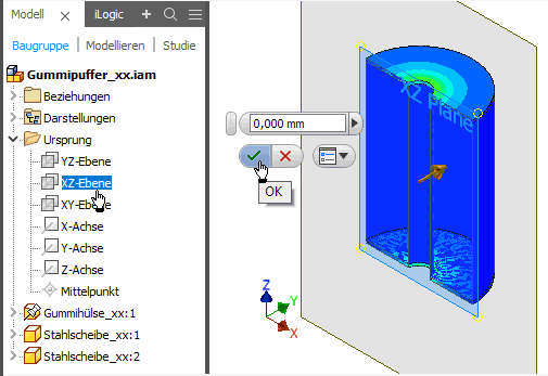 - Im Beispiel bietet sich ein Halbschnitt entlang der XZ-Ebene des Ursprungskoordinatensystems an: