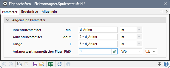 - Im Spulen-Element wird weiterhin nur der Anfangswert des magnetischen Flusses Phi0 für die Einspeisung in den Eisenabschnitt des inneren Magnetkreis-Eisenabschnittes wertmäßig festgelegt: