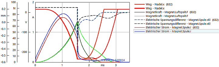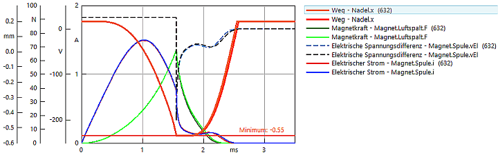 - Die Signalverläufe müssen mit diesen Einstellungen exakt deckungsgleich zur Simulation ohne Wirbelstrom-Elemente sein.
