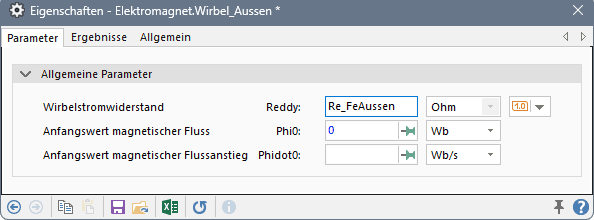 - Bei der Parameter-Definition wählen wir einen Standardwert Re_Eisen = 1000 Ohm → Eisenmaterial praktisch ohne Wirbelstrom!