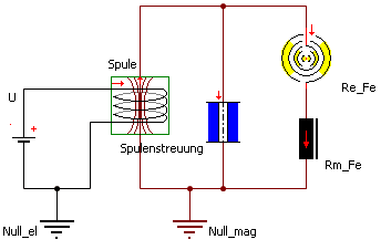 - Das Streufeld der Spule ist ein Luftelement und besitzt unabhängig vom aktuellen Magnetfeld einen konstanten magnetischen Widerstand.