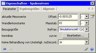 Die Spulenstrom-Kennlinie soll den gemessenen Stromverlauf während des Simulationslaufes abspielen. Dazu importiert man im Eigenschaftsdialog (Parameter) unter Bearbeiten aus dem Messdatenfile Eisen_xx.txt die Tabellenspalte des Stroms. Dabei wird man im SimulationX von einem Importassistenten unterstütz:
