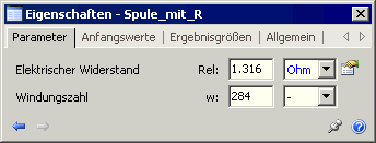 Man sollte die Parameter dieses Modells überprüfen. Die Geometrie von Spule und Eisenkreis sowie die Windungszahl sind bereits als Standardvorgaben eingestellt. Die Spule widerspiegelt sich in zwei Elementen: