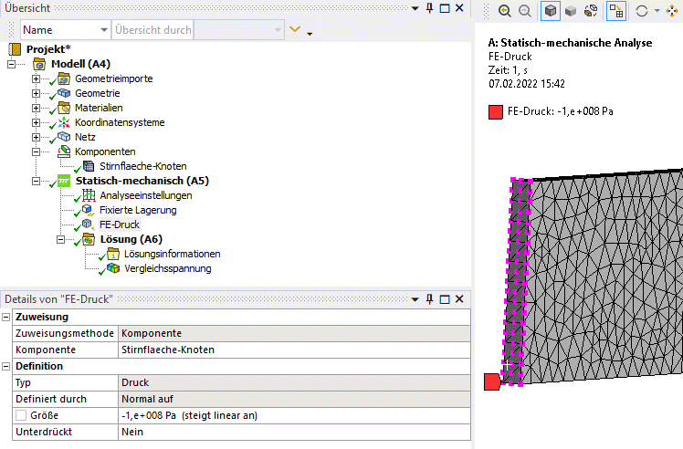 Software FEM - Tutorial - 2D-Bauteil - Ansys - Randbedingungen Zugkraft-Druck.gif