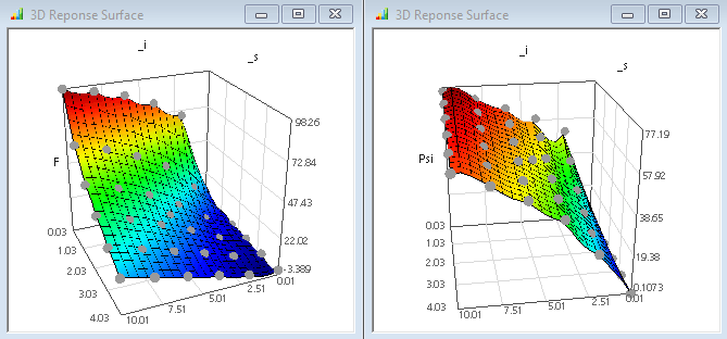 - die Residuen zeigen, dass sämtliche Punkte der echten Stichprobe exakt (max. 2E-13) in die identifizierte Ersatzfunktionen F=f(s,i) bzw. Psi=f(s,i) eingebettet sind: