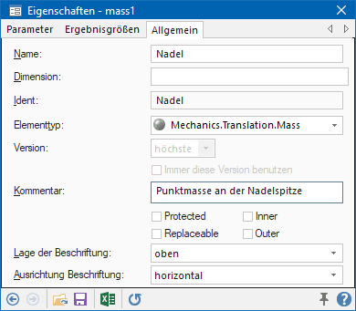 - Im Register Allgemein tragen wir den Namen "Nadel" ein und ergänzen einen sinnvollen Kommentar. Festlegen lässt sich hier auch die Lage und Ausrichtung der Beschriftung: