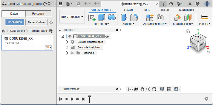 - (Herunterladen) Software CAD - Fusion-Tutorial - BONUS - Konstruktionsumgebung Datei hochladen.gif . . 677 × 418 . . 20 KB . . Alfred Kamusella . . 16:16, 29. Apr. 2022