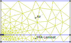 - Der Vernetzungsgenerator berücksichtigt damit auf Grund der kleinen Geometriesegmente die erforderliche feinere Vernetzung um die Leiterbahn.