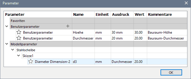 Datei:Software FEM - Tutorial - 3D-Baugruppe - Bauteil Stahlscheibe Skizze Durchmesser Modellparameter.gif
