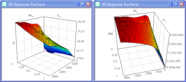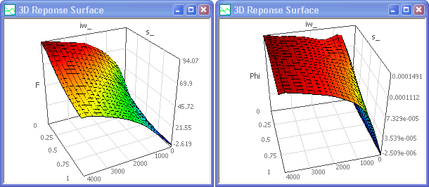 • Nach dem Aktivieren des Adaptiven Designs für den Gauss-Prozess erhält man mit insgesamt ca. 200 Stützstellen im Beispiel eine bedeutende Qualitätsverbesserung insbesondere für die Phi-Antwortfläche:
