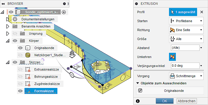 Datei:Software FEM - Tutorial - Topologie-Optimierung Fusion-Formoptimierung Konstruktion Formskizze Extrusion-Schnittmenge.gif