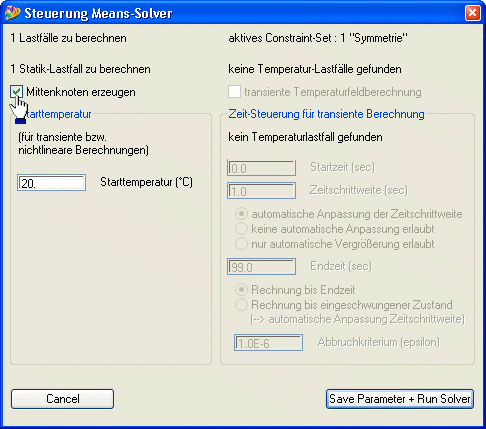 Der Means-Solver bietet die Möglichkeit, ein vorhandenes Netzt durch automatisches Hinzufügen von so genannten Mittenknoten praktisch mit einer höheren Genauigkeit zu berechnen: