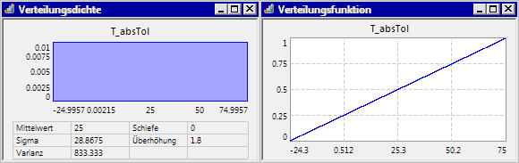 - Hinweis: Leider kann man anhand der dargestellten Grenzwerte nur näherungsweise die tatsächlichen Grenzen der Streubereiche abschätzen. OptiY schneidet Werte der Dichtefunktion ab, die kleiner als 1/100 ihres Maximalwertes sind.