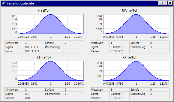 Hier erhält man die gewählten "perfekten" Verteilungsdichtefunktionen der Streugrößen angezeigt: