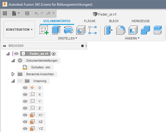 - In der deutschen Fusion-Version wird standardmäßig die Einheit mm verwendet.