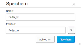 die noch unbenannte Konstruktion unter dem Namen "Feder_xx" (mit Teilnehmer-Nr. xx=01...99) in die "Position" des gleichnamigen Projektes. - Jedes Speichern erzeugt, beginnend mit der Version v1, eine neue Version vn der Konstruktion! Die aktuelle Version vi ist dem Datei-Namen nachgestellt: