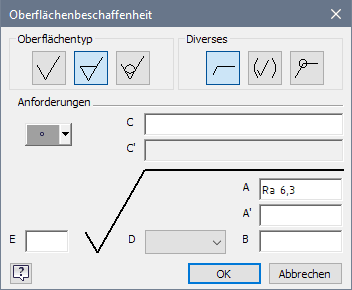 - Die Dialogmaske entspricht nicht ganz den Vorgaben der Norm für die zu beschreibende mittlere Oberflächenrauheit und muss deshalb sinngemäß angewandt werden: