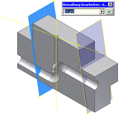- Es darf für diese Hilfskonstruktion nur eine Maßabhängigkeit verwendet werden (die Neigung von 10,xx°). Dieser Wert sollte direkt verwendet werden (nicht -10,xx° oder 100,xx°).