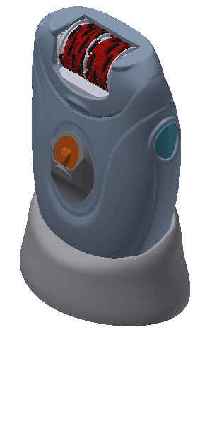 Die Ladeschale muss eine möglichst genaue Negativform des Geräts besitzen. Theoretisch ist es natürlich möglich, diese von Hand zu modellieren. Oft ist dieser Weg aber je nach Komplexität der Form aufwändig. Im vorliegenden Fall kommt erschwerend hinzu, dass die Gehäusebauteile des Epilierers nicht manuell konstruiert wurden, weshalb keine nachvollziehbare Grundlage zur Synthese der Geometrie vorhanden ist.