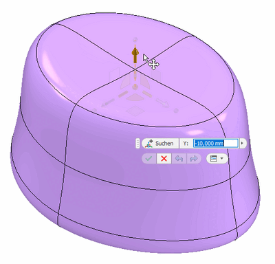 - Dazu schieben wir den Mittelpunkt der oberen Deckfläche 10 mm nach unten, sodass eine leichte Mulde entsteht: