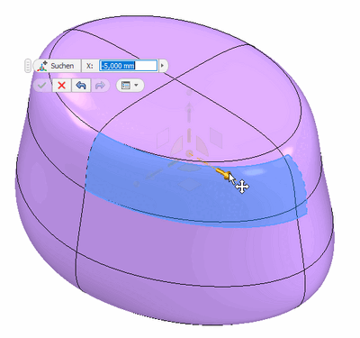 kann man diese Kante jetzt verschieben. Wir drücken sie 12,5 mm in negative Z-Richtung nach innen. Durch die definierte Symmetrie sollte ein Oval entstehen: