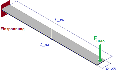 Abmessungen der einseitig eingespannte Biegefeder mit rechteckigem Querschnitt: