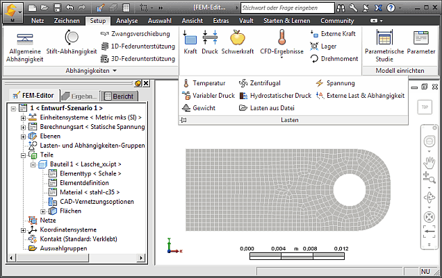• Die in Autodesk Simulation Mechanical verfügbaren Lasten findet man unter MFL > Setup > Lasten: