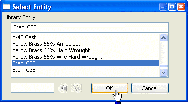 - Da die Werte von Stahl C35 darin nicht verfügbar sind, wählen wir irgendein Material, damit wir das Umschalten auf die neue Bibliothel bestätigen können.