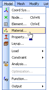 Bevor wir Finite Elemente erzeugen können, müssen wir zuerst das Material definieren (Model > Material):