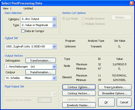 - Grundlegend kann man umschalten zwischen einer Funktionsdarstellung in einem XY-Diagramm bzw. einer Zuordnung der Ausgabewerte zum FE-Modell-Netz.