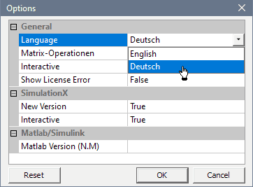 - Umschalten der Bedienoberfläche auf die Sprache "Deutsch" (um Konsistenz mit den deutschen Übungsanleitungen herzustellen):