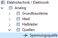 - Um die Schaltung mit einem Null-Potential zu versehen, benötigen wir noch eine elektrische Masse (in der Bibliothek unter Elektrotechnik/Elektronik-Analog-Grundbausteine):