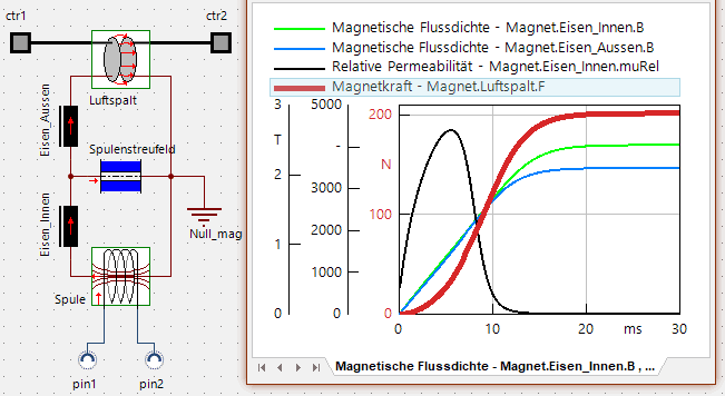 Am Beispiel des Signalprozessors haben wir bereits etwas Erfahrung bei der Compound-Definition mittels des SimulationX-TypeDesigners gesammelt. Diese Erfahrung werden wir nun am Beispiel des Elektromagneten vertiefen: