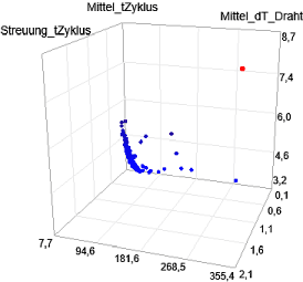 Die 2D-Projektionen dieser "Seifenhaut"-Menge führt im Beispiel nur für die (Mittel_tZyklus, Mittel_dT_Draht)-Ebene zu einer anschaulichen Darstellung der Pareto-Menge:
