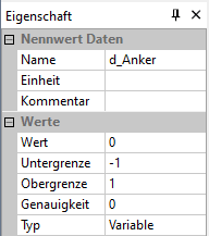 Hier sollte der jeweils im Simulationsmodell für die Ausgangslösung eingestellte Wert unter Berücksichtigung der für den Parameter verwendeten physikalischen Einheit verwendet werden (im Beispiel: d_anker in [mm]).
