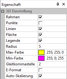 Ein Mausklick auf das 3D-Diagramm ermöglicht im Eigenschaftsfeld die Konfiguration der Darstellung.