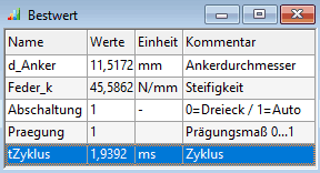 Zur gewählten Federsteife kann man einen geeigneten Ankerdurchmesser wählen, der einen hinreichend schnellen Prägezyklus ermöglicht.