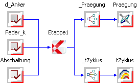 Hinweis: Falls die Modellparameter für die Zuordnung des Eingangs nicht angezeigt werden, muss die Datei des Modells für Etappe1 erneut geöffnet werden!