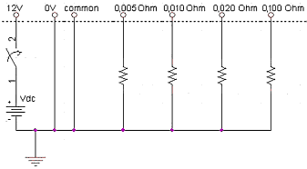 - Die Messung des Stromes wird zurückgeführt auf eine Spannungsmessung an einem Vorwiderstand von 0.1 Ohm. Kanal 1 des Speicheroszilloskops dient zur Aufzeichnung dieses am Vorwiderstand gemessenen Spannungsverlaufs.