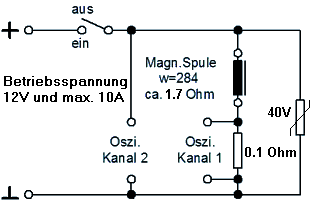 Gemessen wird der Stromanstieg in der Spule des Magnetkreises nach Einschalten einer Gleichspannung: